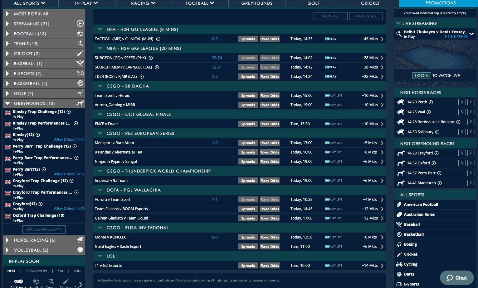 Sporting Index offers live streaming on some selected sports. Down the left-hand side menu, which lists its sports, there is a “Streaming” tab that lists all the current events that can be streamed. These include cricket, tennis, esports, horse racing and greyhounds. Even for sports that can’t be streamed on the platform where they can be watched, whether that be TNT Sports, Sky etc. clearly signposted. It’s a really good service, and overall it’s such a clear way of letting punters know what’s available to them really quickly and easily.