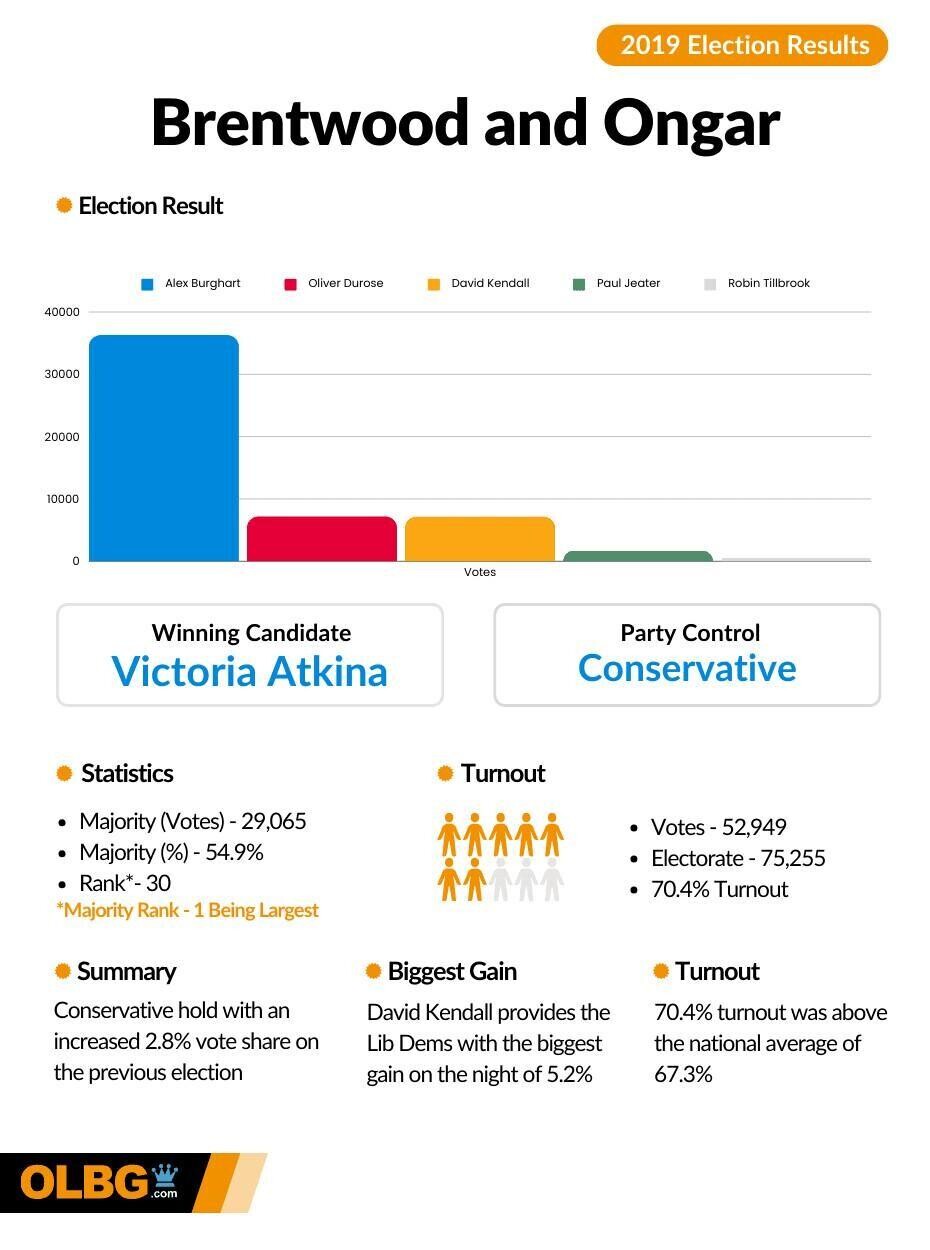 - In doing so, it meant that Brentwood and Ongar was the party's ninth-safest seat in the 2019 General Election