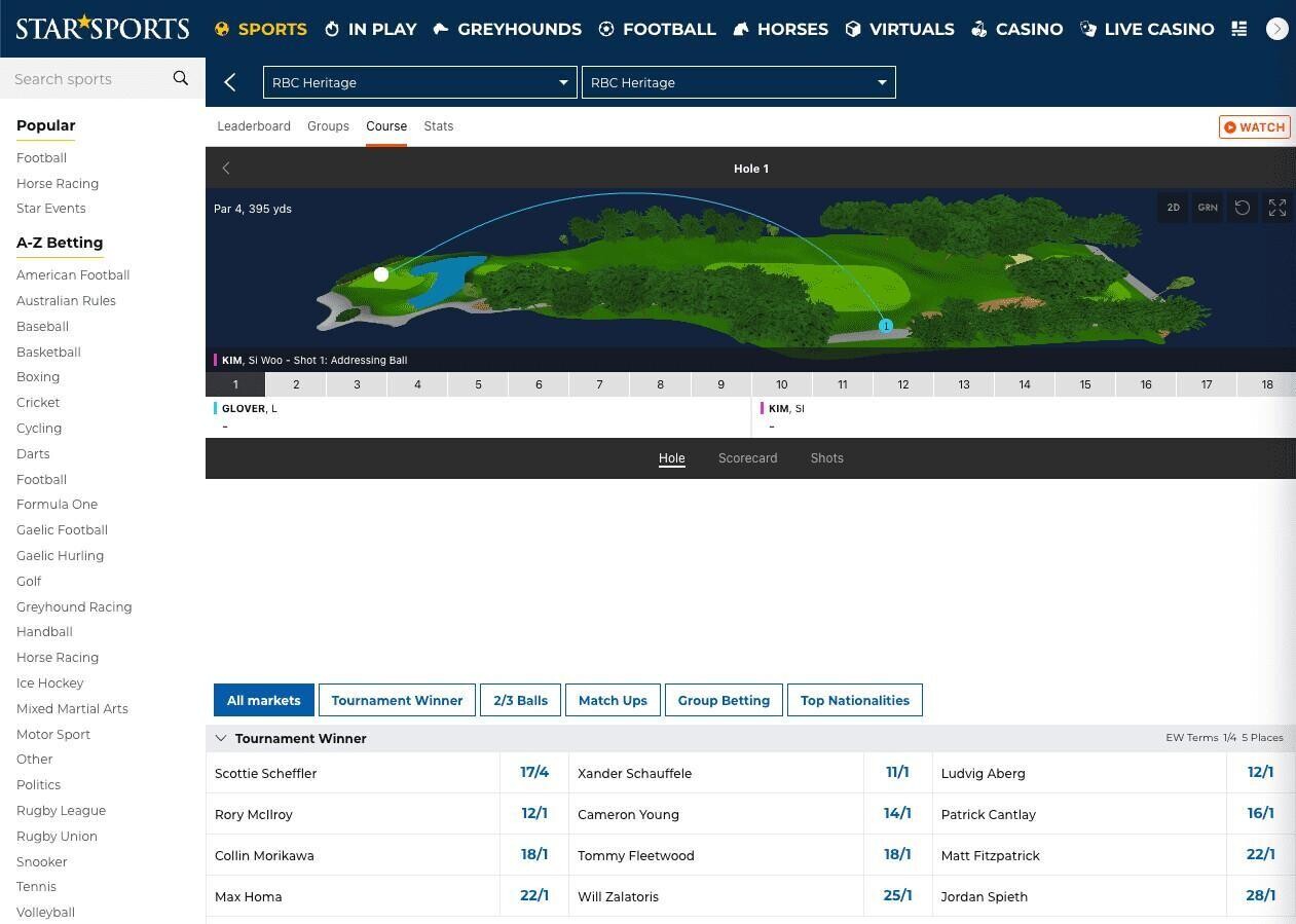 Star Sports is the best bookmaker for betting on golf, and by some way. The bookmaker tends to have decent promotions for most events, and that applies to golf too, with dedicated offers for smaller PGA events, not just the majors. They also have a tonne of markets per event, great event coverage and brilliant in-play betting. What helps it stand alone, however, is the level of statistics that you get for events – it is totally unrivalled. Like I said, they are conclusively the best out there.