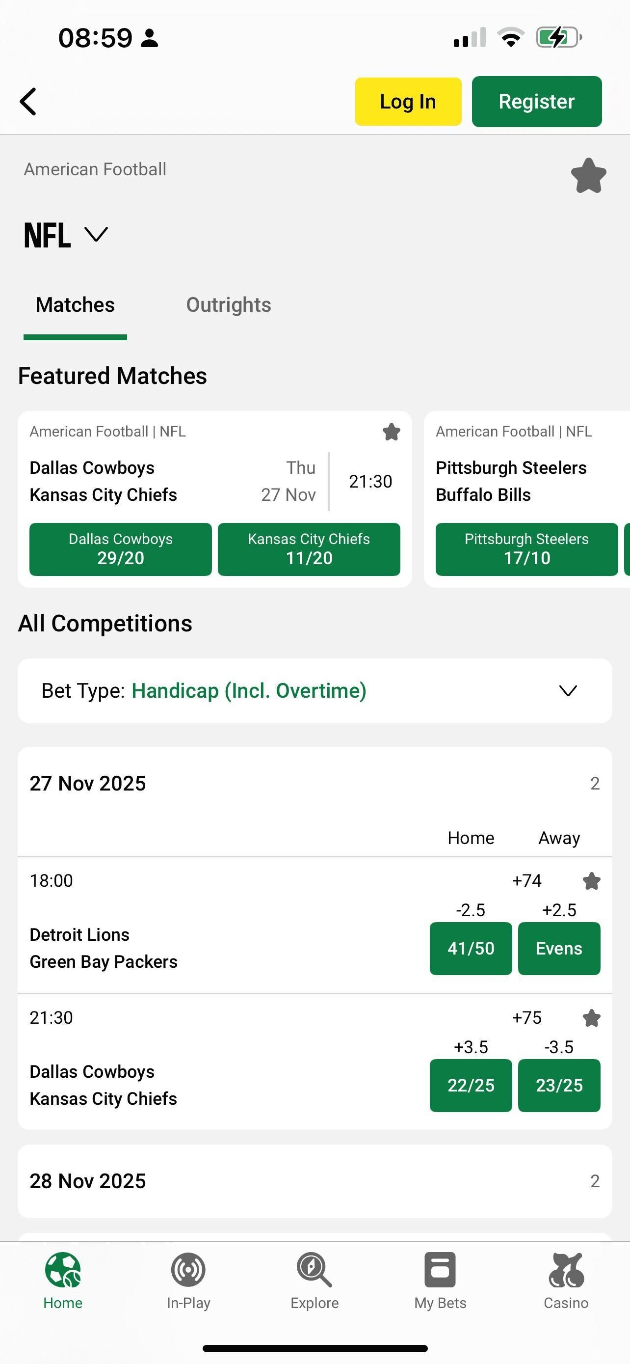 One of the most popular bets to make on NFL is on the Handicap Lines market.