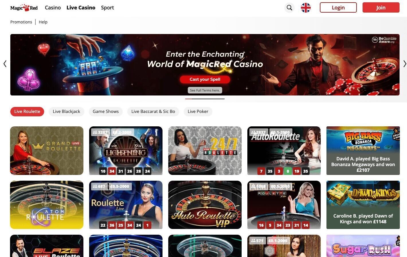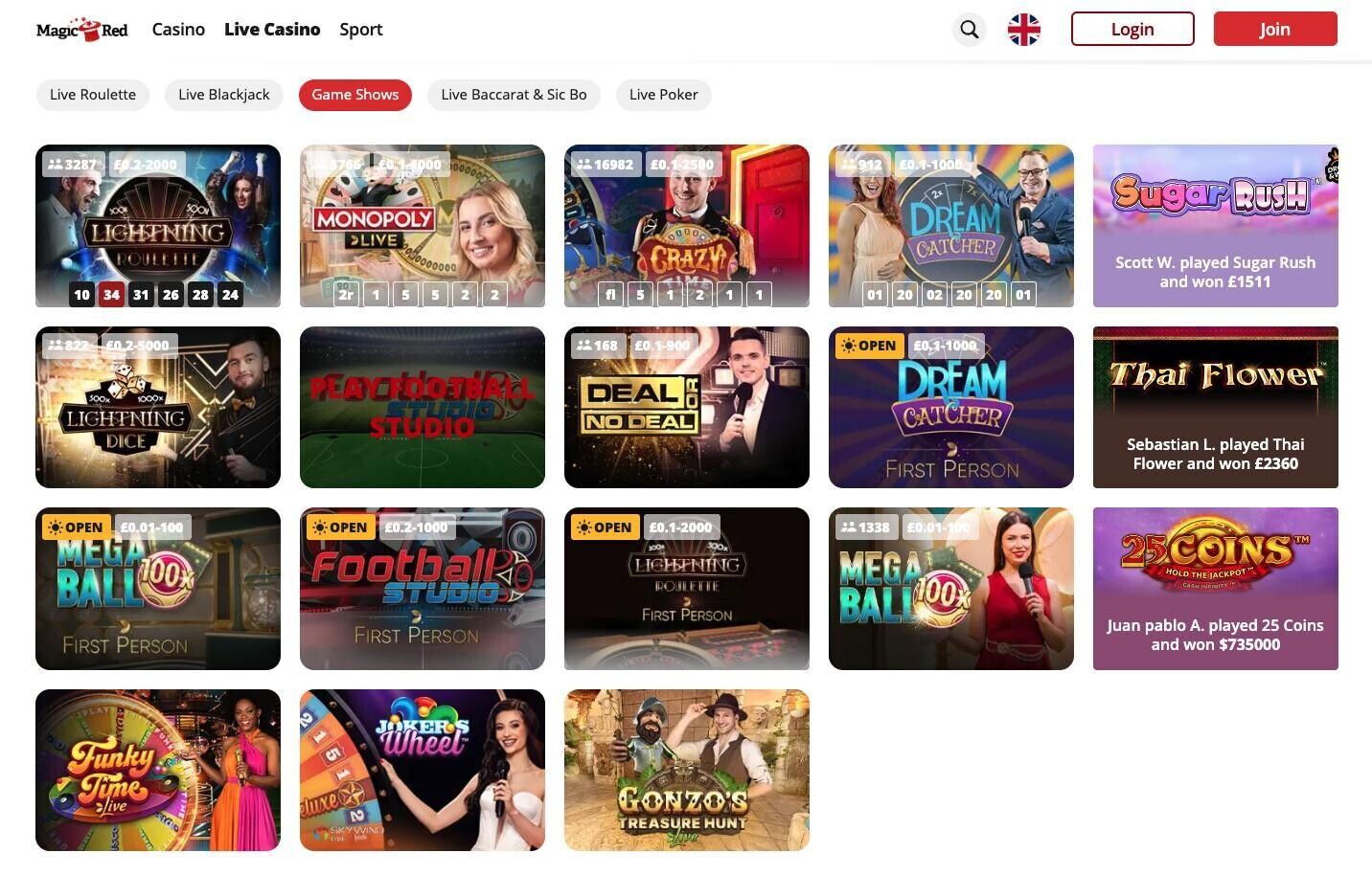 Within the Game Shows part of MagicRed Casino’s Live Casino site, players can enjoy nearly 20 different studio games.