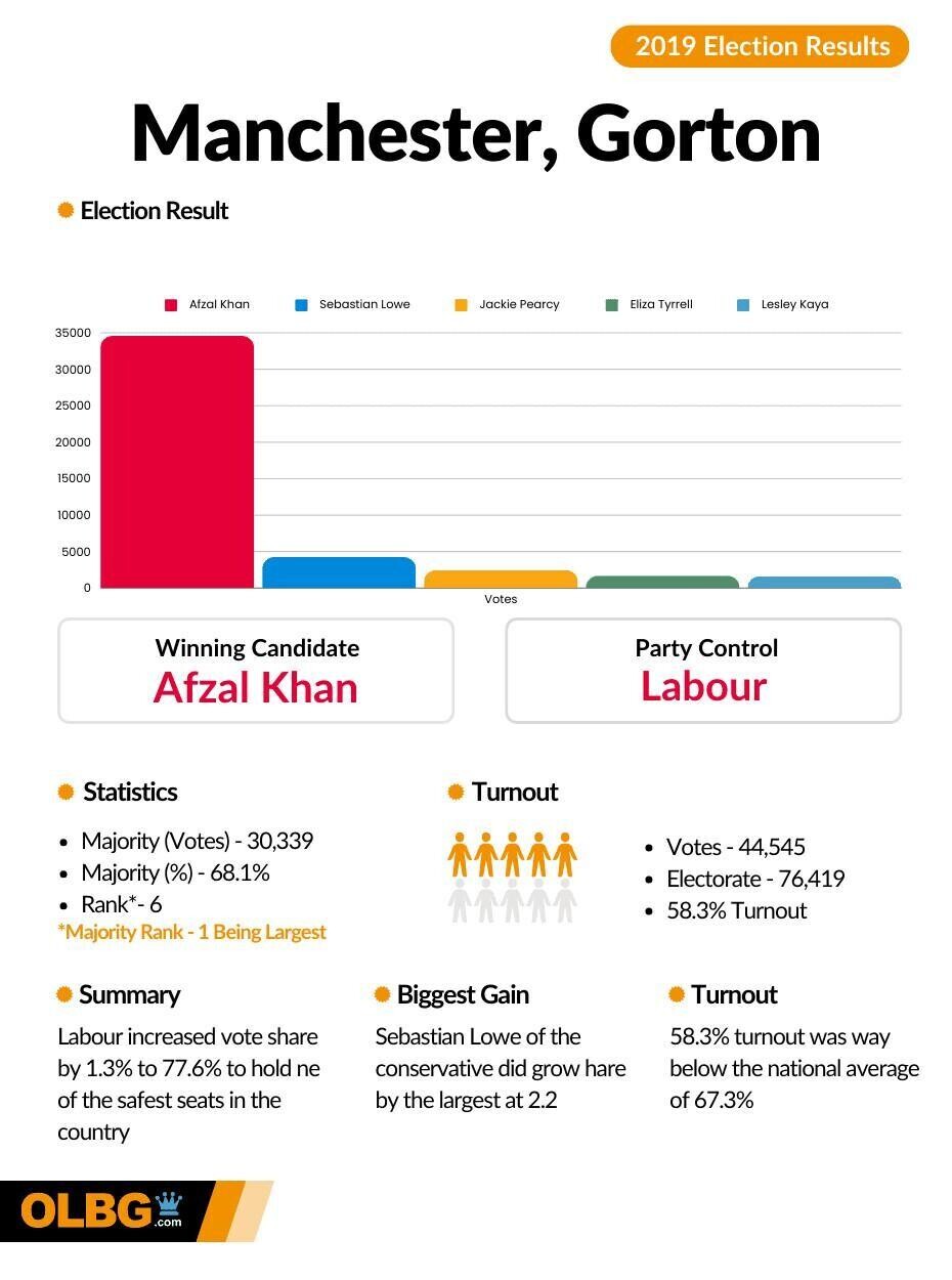 - In doing so, it meant that Manchester, Gorton was Labour's sixth-safest seat in the 2019 General Election