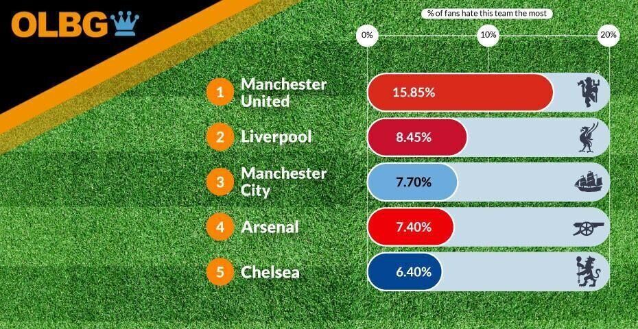 1. Manchester United - 15.85% of fans hate this team the most
