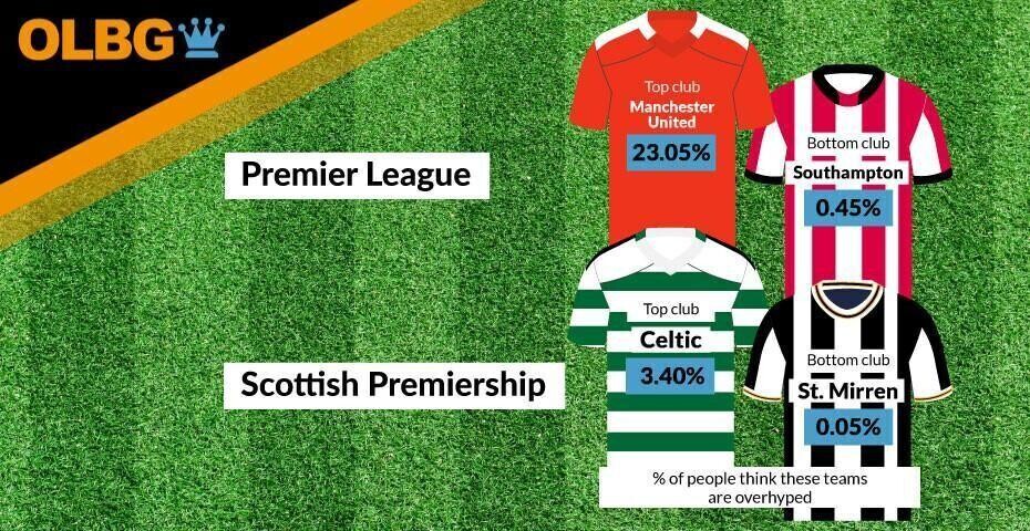 The most overhyped Scottish team is Celtic, overrated by 3.4% of fans. Celtic were overrated mainly by people from Edinburgh at 17.7%, followed by people from Glasgow and Belfast, with up to 10.3% of people from here feeling The Bhoys were overhyped. Rangers were overhyped by 1.2%, the second-highest percentage in Scotland.