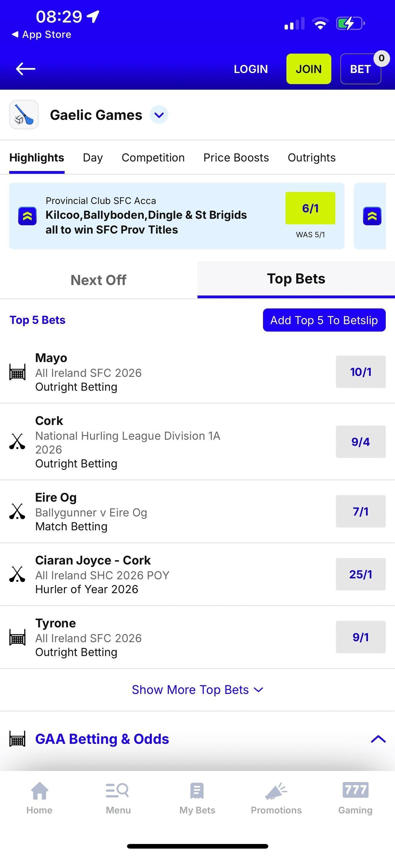 BoyleSports is an established Irish bookmaker, and their deep roots in GAA are evident in their platform. They cater heavily to GAA fans, with comprehensive coverage of county and club matches in both codes. Market availability is consistently strong, with all the usuals (Match Result, Handicap, Total Points) plus some extra variety like Double Result and First Scorer markets. Their live betting section is well-integrated, offering real-time updates and quick bet placement. BoyleSports often rolls out promotions tied to marquee events like the Munster Final or All-Ireland semi-finals – think odds boosts, refund specials, and free bet offers. Their app and site are well-optimised for quick navigation, making them a good choice for in-play bettors. With a strong offline presence in Ireland and a solid online platform, BoyleSports is a trustworthy and culturally attuned option for GAA punters.