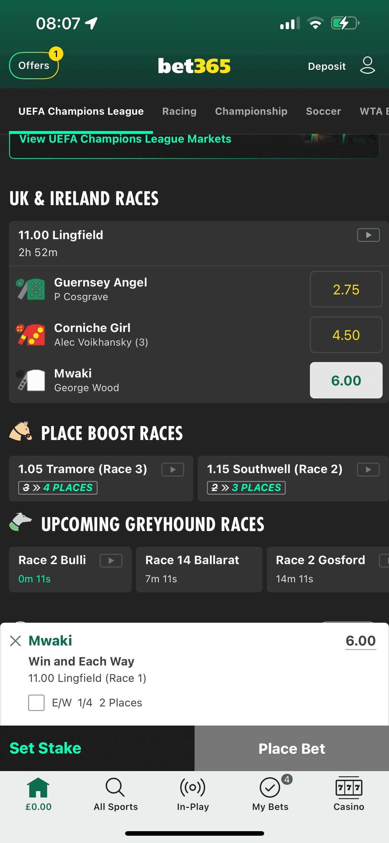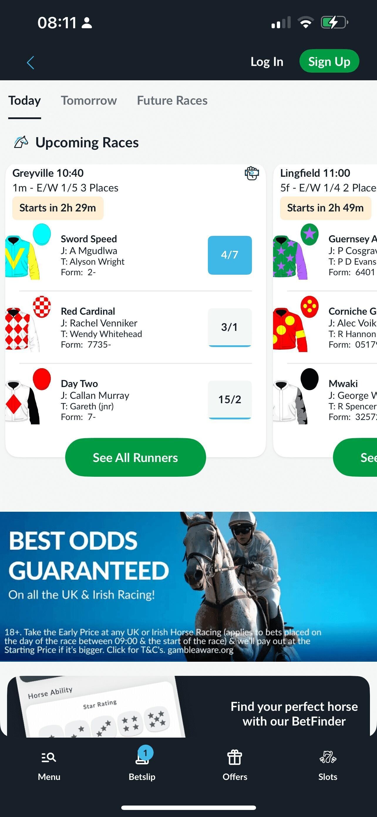- Best Odds Guaranteed from 7:00AM on the day of the race.