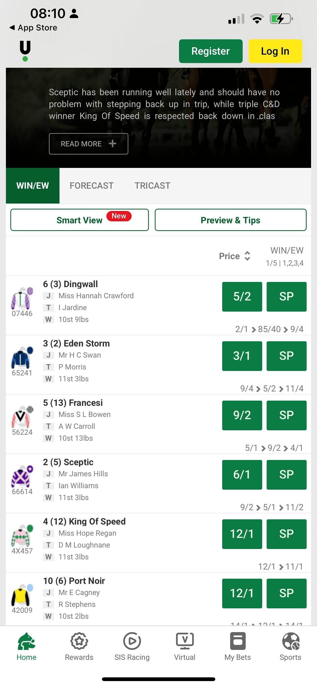 This is something that William Hill is known for and there aren't many sites that can match this iconic bookie for pure odds. Their horse racing product is exceptional and within the racing section you’ll see racecards for upcoming meets, all the races which have extra places offered, as well as the ability to build your own racecard. William Hill offers Best Odds Guaranteed to its customers. You can get BOG after 10am on race day of all UK and Irish races, including in multiples, and with a maximum restriction set at £2,500.