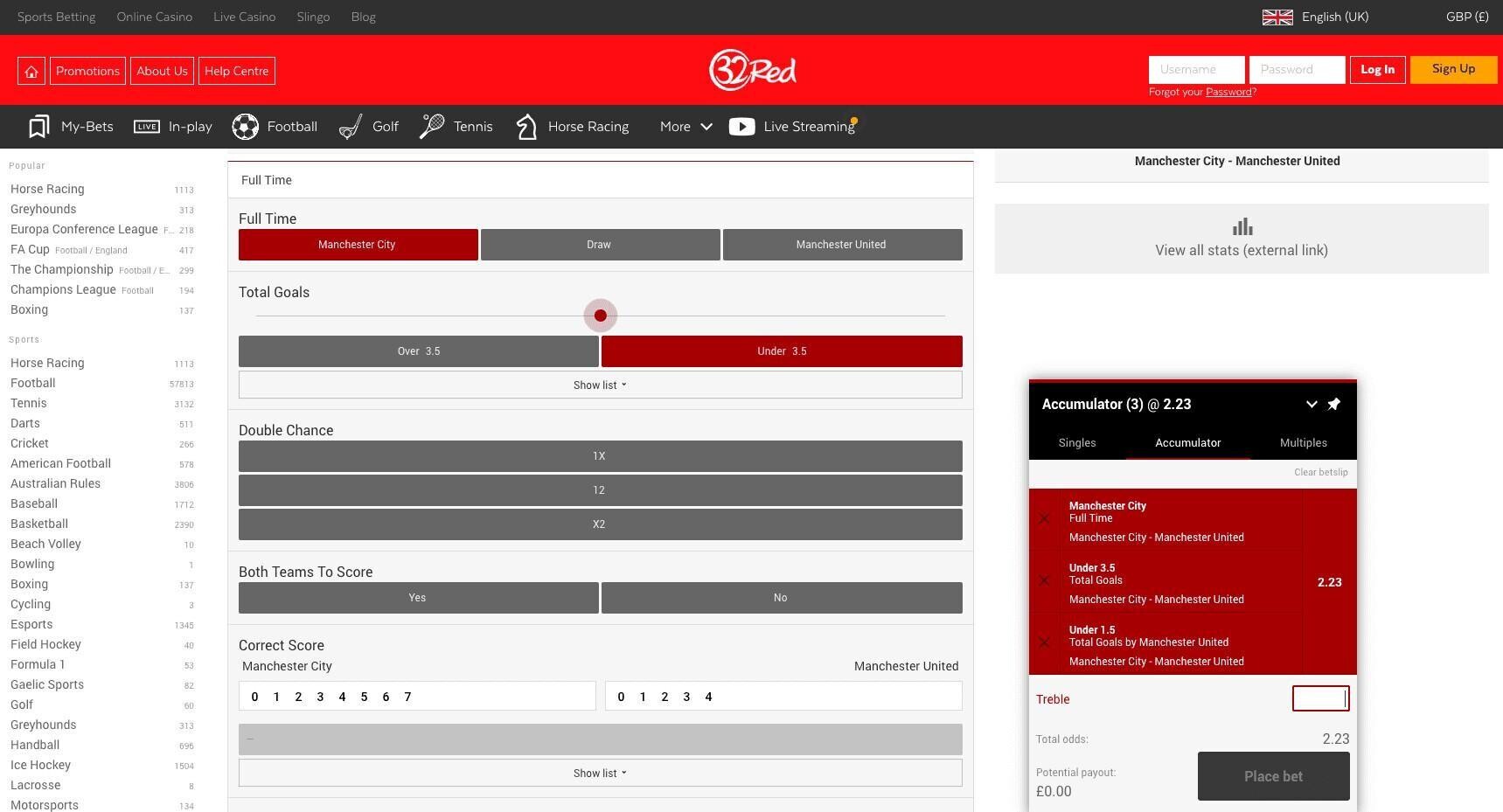 This section should only really highlight if there are issues, as the process is almost identical on every site. Within a few minutes of signing up to 32Red I placed a couple of bets on different sports, one of which took advantage of the welcome offer, and I used their bet builder feature, which was very indeed.