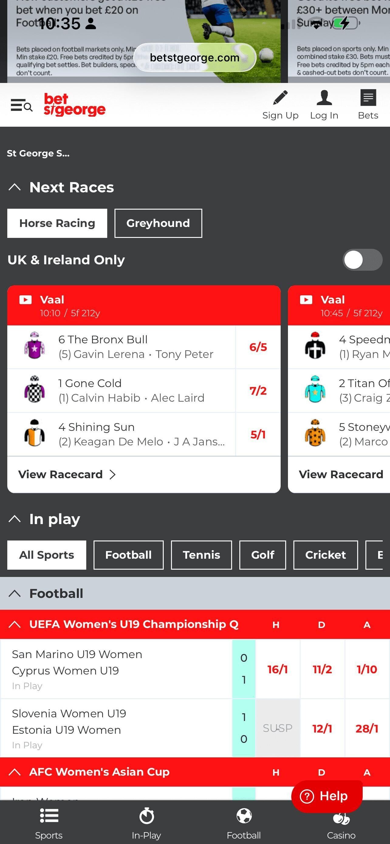 Bet St George offers live streaming for horse racing and greyhound racing.