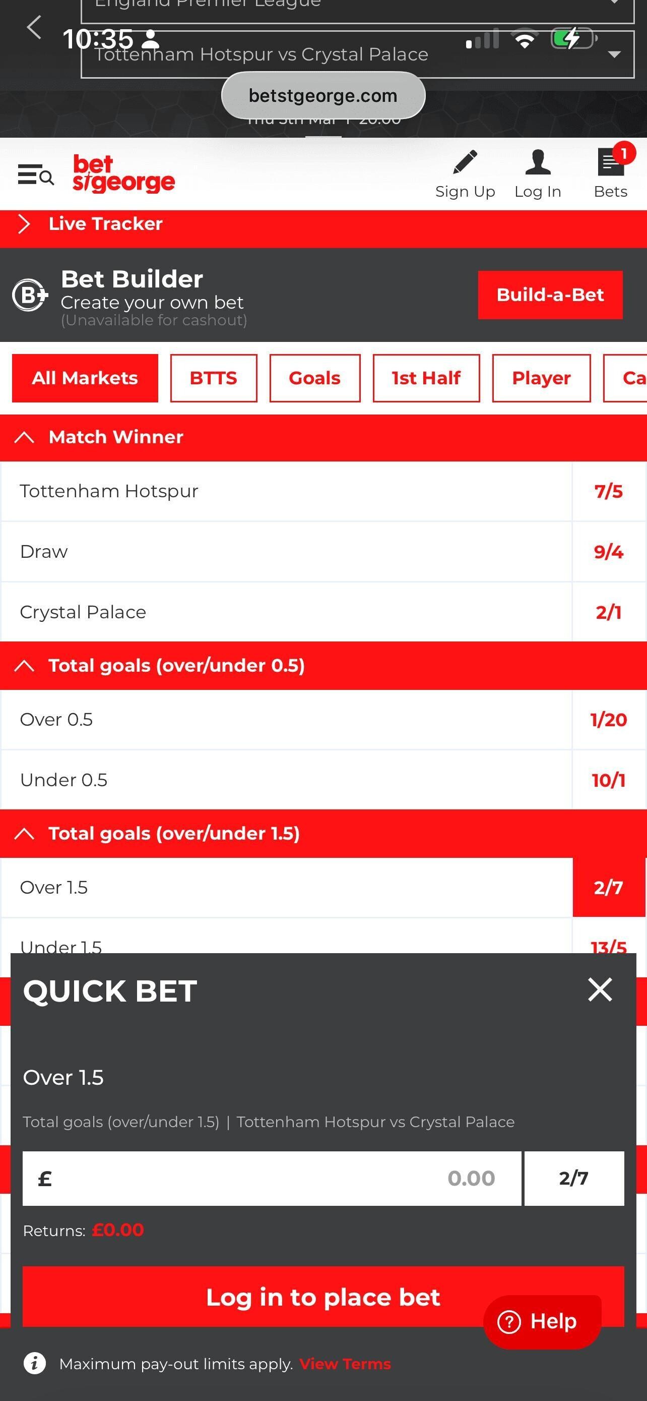This section should only really highlight if there are issues, as the process is almost identical on every site. Within a few minutes of signing up to Bet St George I placed a couple of bets on different sports, one of which took advantage of the welcome offer, and I used their bet builder feature, which was very good indeed.