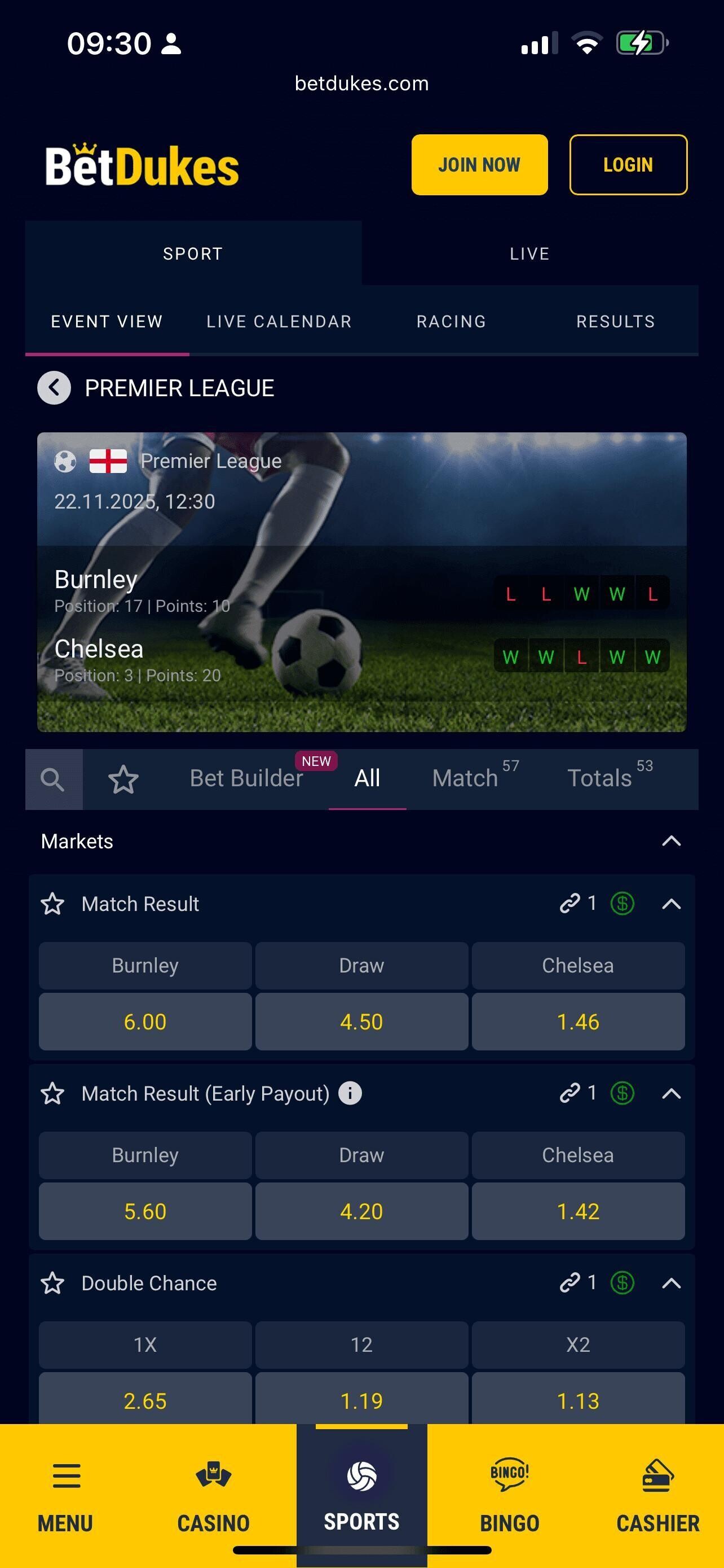 This section should only really highlight if there are issues, as the process is almost identical on every site. Within a few minutes of signing up to BetDukes I placed a couple of bets on different sports, one of which took advantage of the welcome offer, and I used their bet builder feature, which was very good indeed.