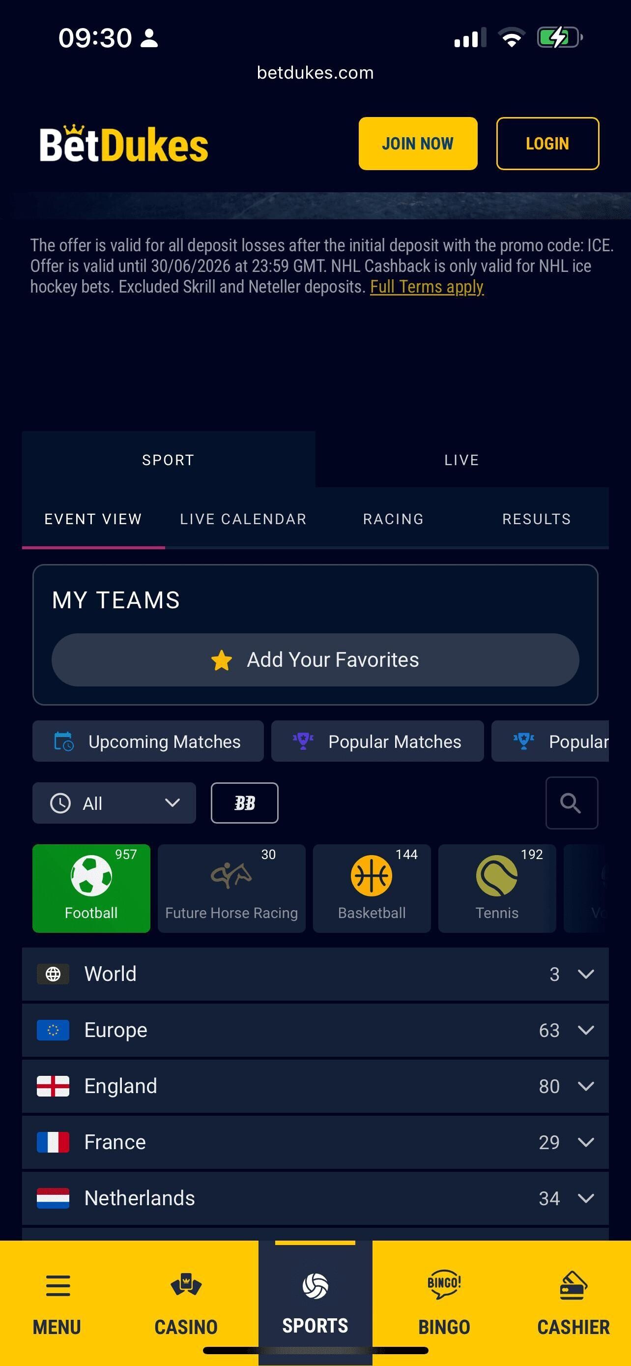 We rank every bookie, at every sport, and BetDukes is just a bit off our best football betting sites in the UK, but it’s still very good. The menu panel is telling me that there’s nearly 500 different games that I can bet on at this moment in time, evidence that it covers the sport in terms of event coverage as well as most other bookies. Beyond that, you can’t argue with the market depth per event, which is also very impressive. There’s no live streaming, however, and the in-play betting isn’t as good as some others, which is why it doesn’t quite make our top 10.