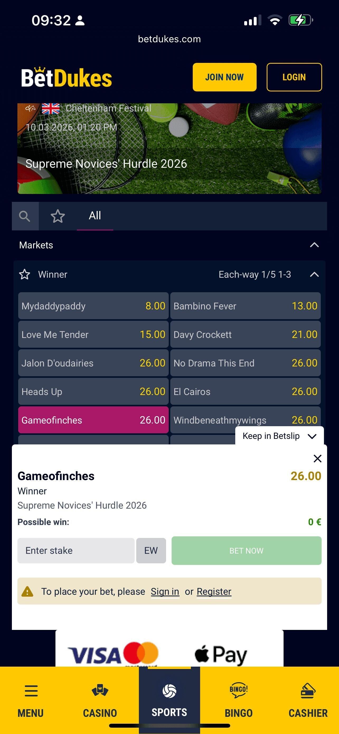 There is no BetDukes app, but the mobile version of the site is exceptional and I wouldn’t be surprised if it’s been built with that in mind – it does exactly what you want and that is not to feel too far removed when you switch from one device to the next, but also being product-led, and designed to suit its purpose as a proper mobile version.