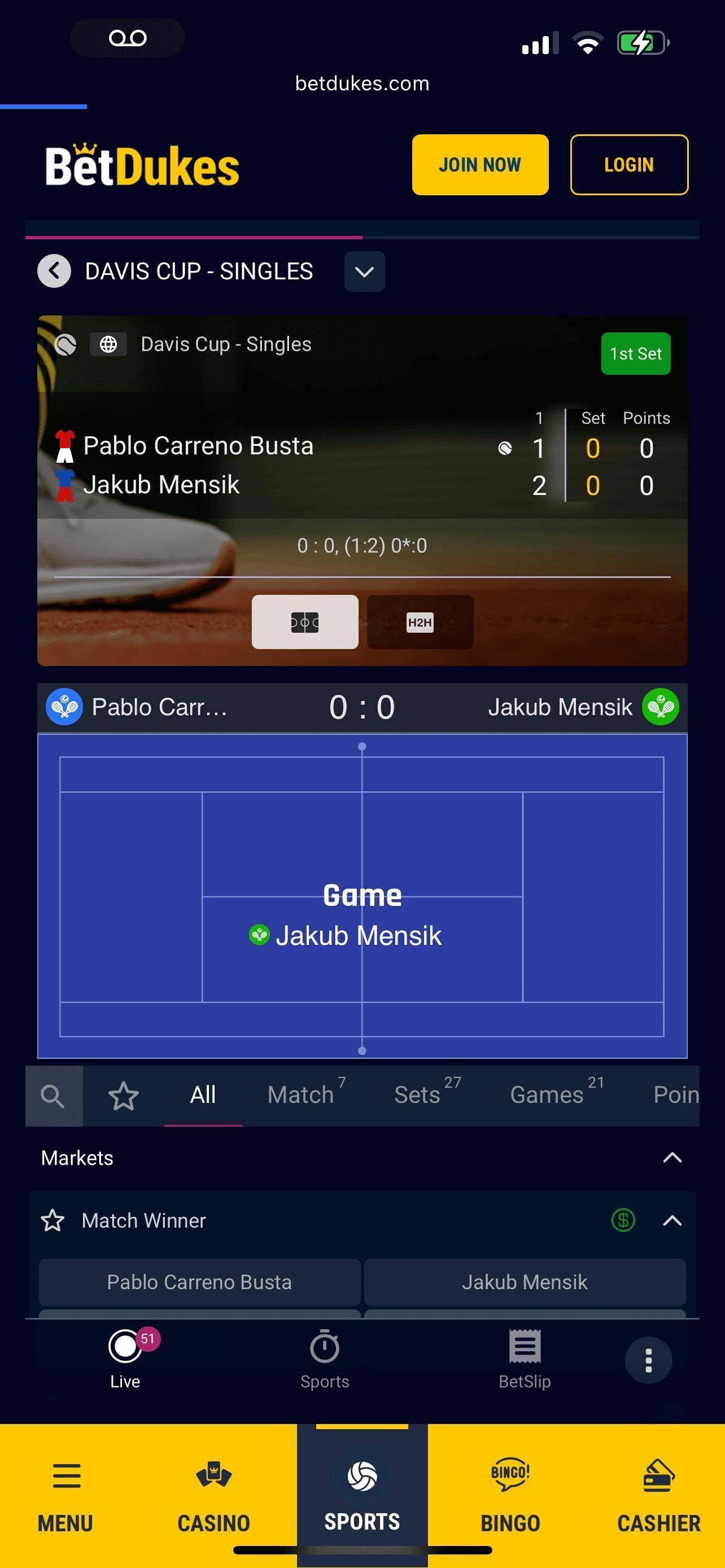 BetDukes doesn’t offer any live streaming at the time of this review.