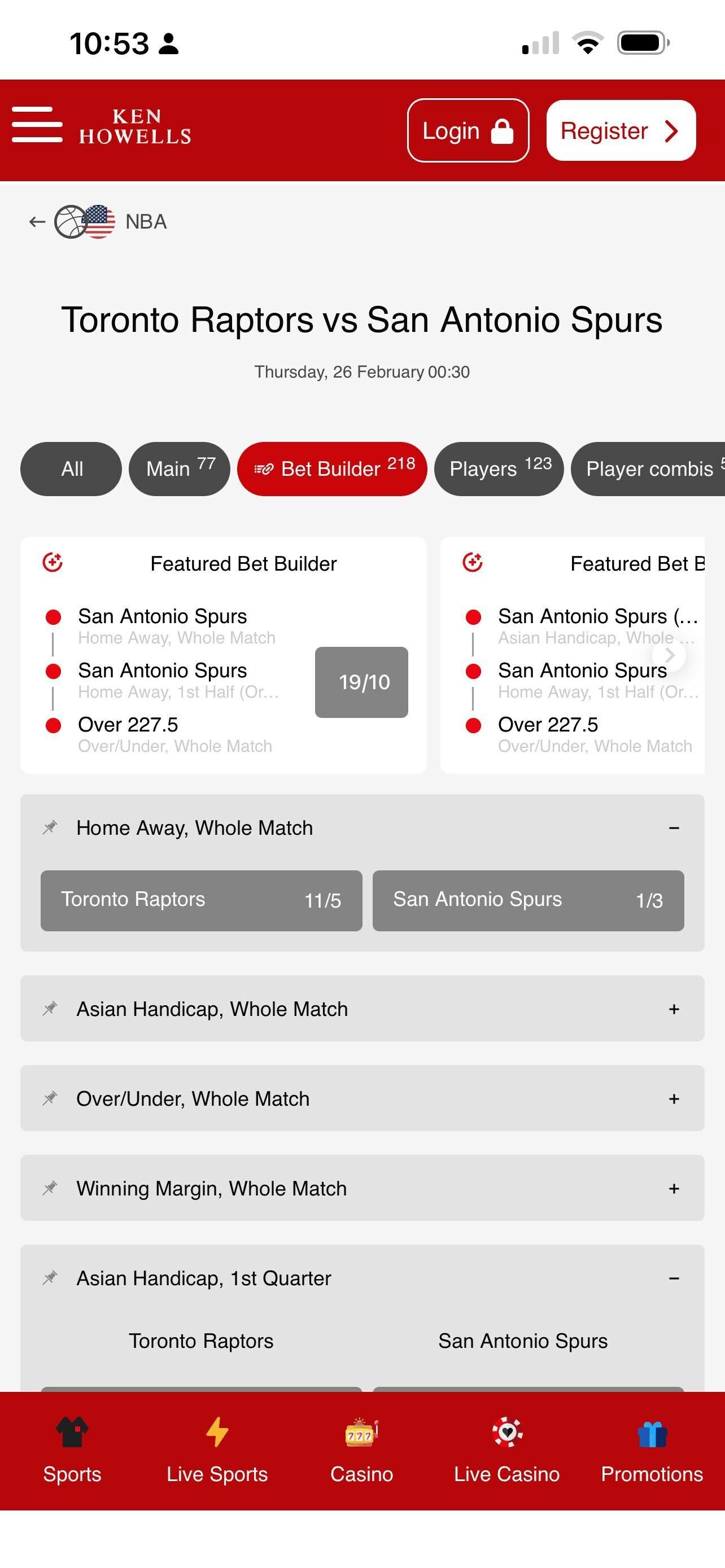 Ken Howells has loads of basketball leagues to bet on, with hundreds of competitions. What’s nice to see are some pre-made, featured Bet Builders. There are also plenty of markets per game, with game, team and player markets covered impressively. Take the WNBA, for example, with a fantastic range of markets – match, halves/quarters, points, player probs on points, rebounds, assists etc. – right across the board. It’s quite impressive. You can also compare Ken Howells to the best basketball betting sites.