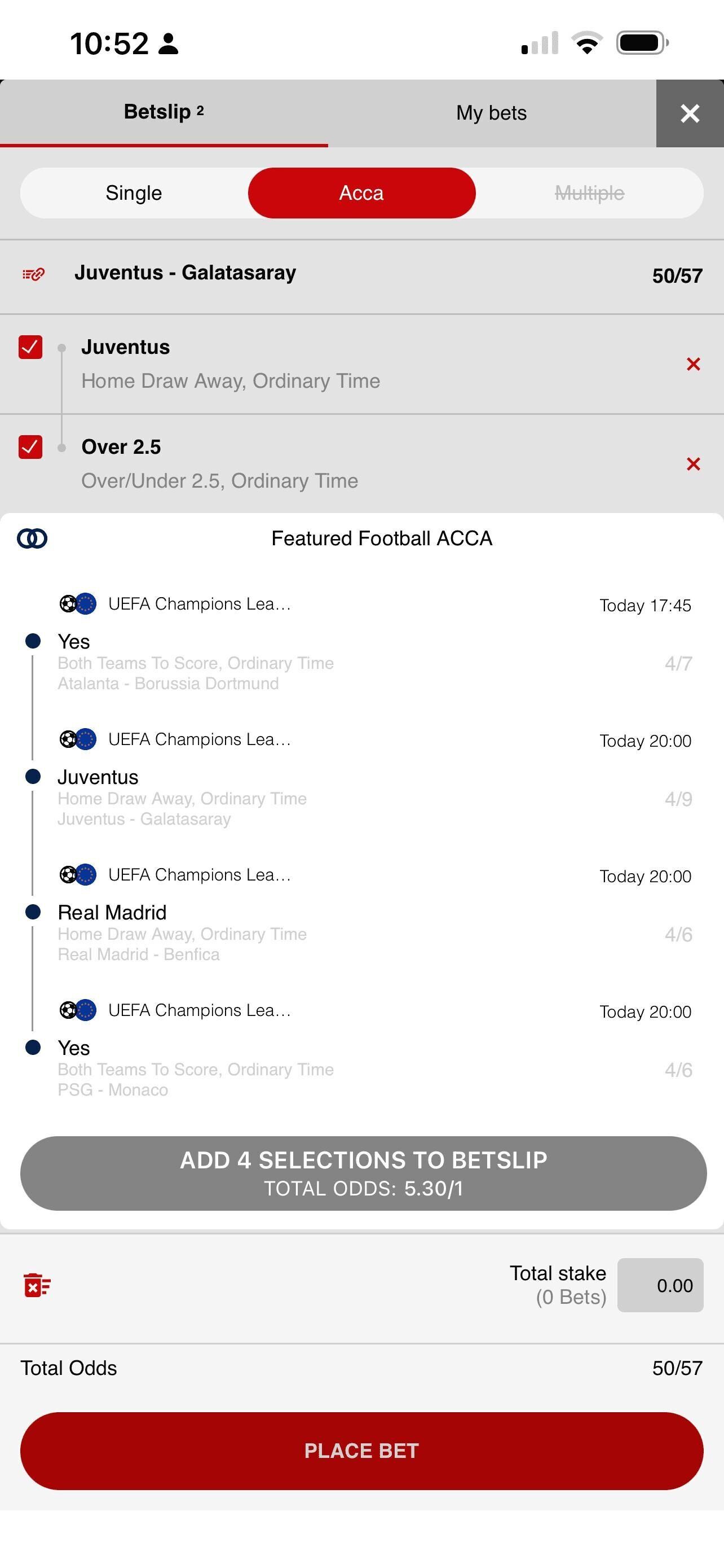 This is really good. Head to any football match and it’ll be one of your first options, where you can add multiple bets from an event into a multiple, or opt for some of the pre-made combos, which essentially does the same thing as a bet builder. There are loads and loads of markets available, scroll down and you can choose between most of the markets that you’d expect.