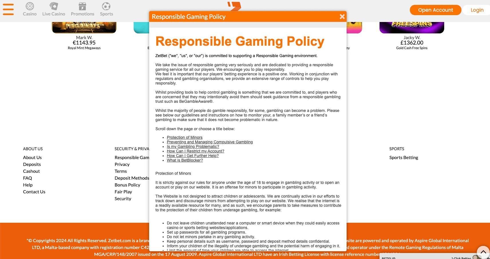 Expect ZetBet to contact you via your preferred communication method if there are suspicious activities on your account. This protects your account from being accessed by someone other than you and ensures you control your gambling activity. ZetBet have a legal obligation to question your activity if they believe it to be suspicious.