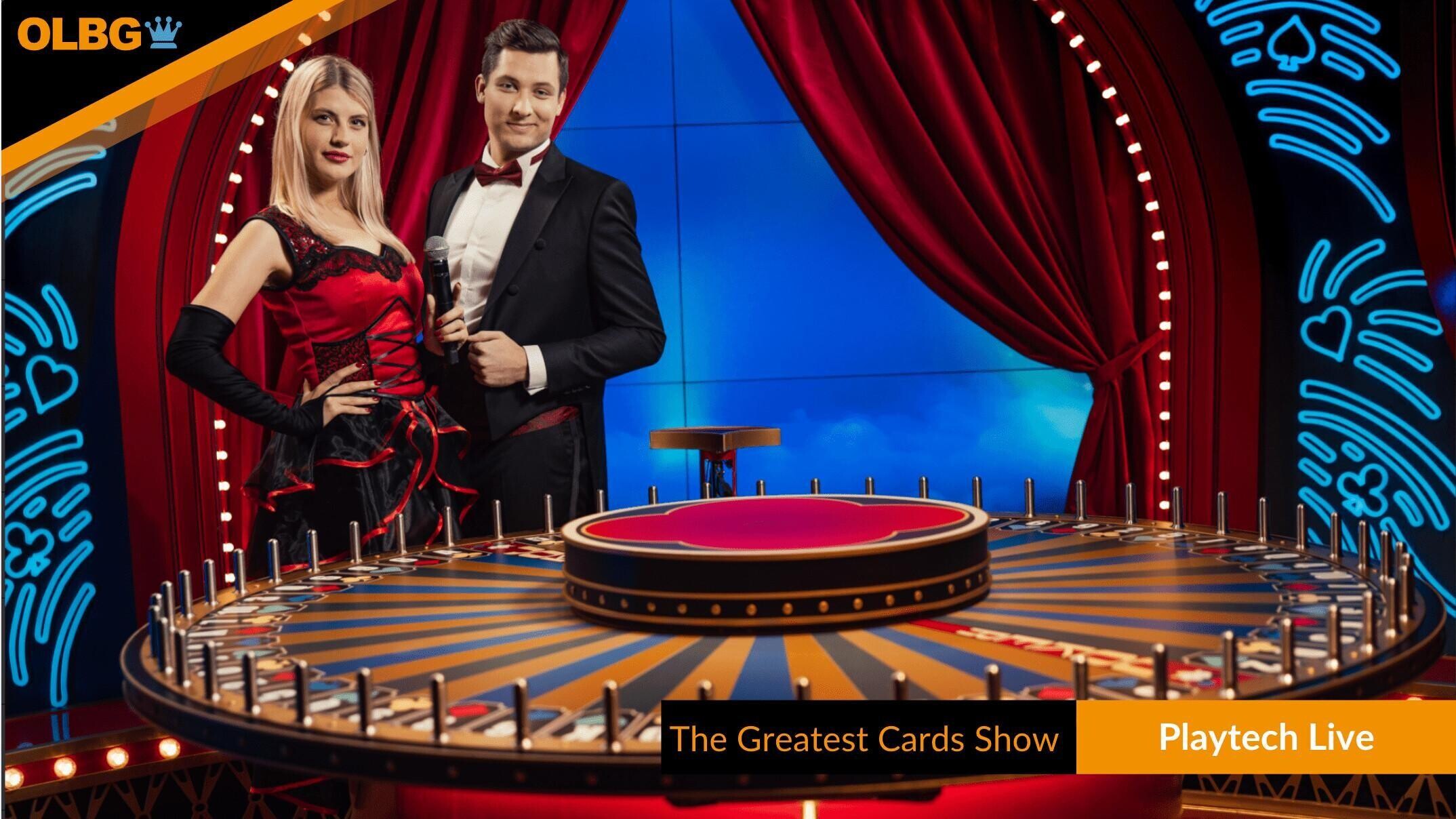 The Greatest Cards Show Live is a live dealer card game by Playtech, featuring a spinning wheel with card symbols and Jokers. Players bet on cards to win 40x payouts or trigger one of three multiplier-filled bonus rounds for bigger prizes.