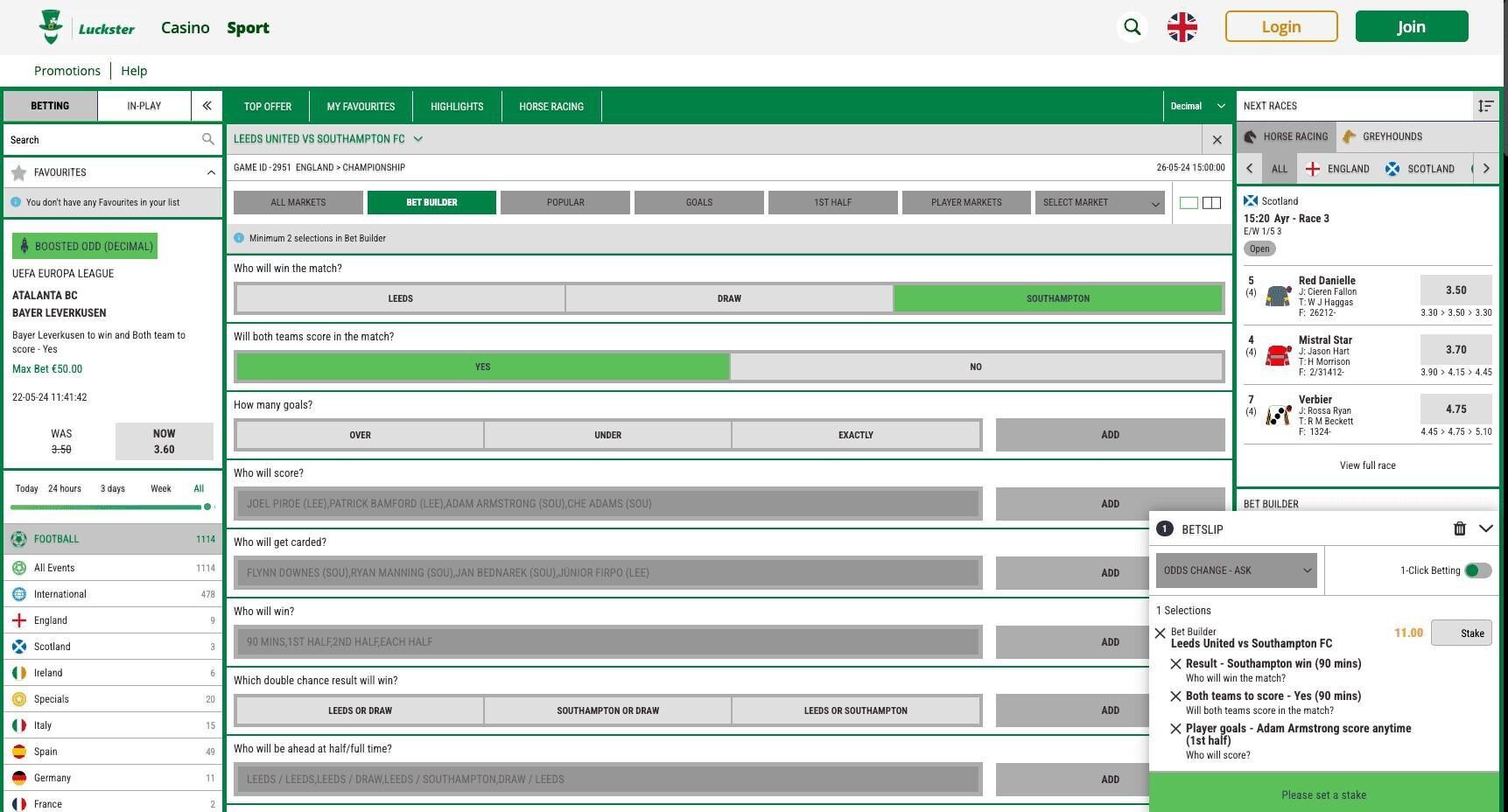 This section should only really highlight if there are issues, as the process is almost identical on every site. Within a few minutes of signing up to Luckster I placed a couple of bets on different sports, one of which took advantage of the welcome offer, and I used their bet builder feature, which was very indeed.