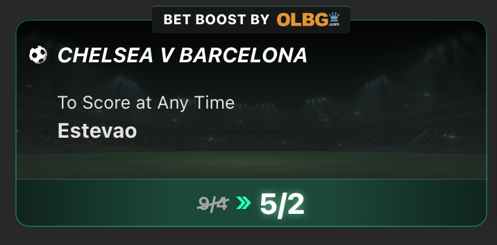 Bet365 have exclusively enhanced the odds on Estêvão to score anytime in Tuesday’s showdown at Stamford Bridge.