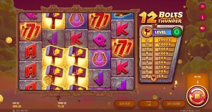 The 12 Bolts of Thunder slot game is made up of 5 reels and 4 rows to play with.