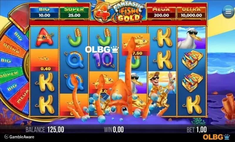 The 4 Fantastic Fish Gold Dream Drop slot takes place on 6 reels by 4 rows, and there are 4,096 paylines. Winning combinations are formed when you land matching symbols which land from left to right, beginning from the leftmost reel. For the highest value symbols - the fisherman, seagull and crab- you need to match 2 or more symbols. But for the remaining symbols, it’s the standard 3 or more symbols.
