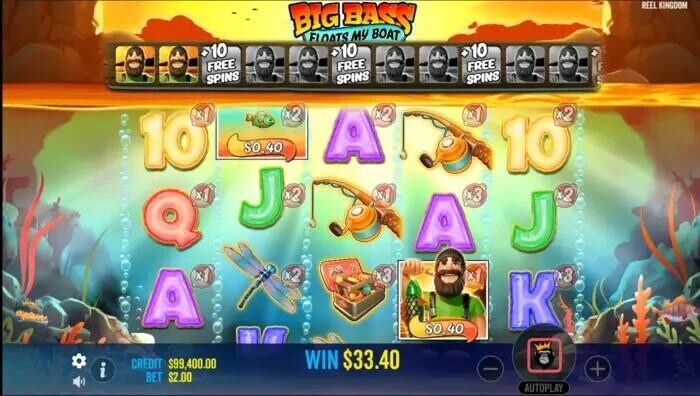 There are 10 non-adjustable paylines to play with for the Big Bass Floats My Boat slot game.