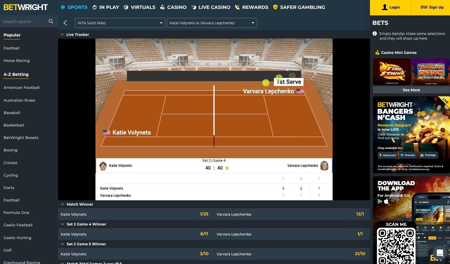 BetWright is great for event coverage, odds and markets. It’s always worth keeping an eye out on tennis related promotions for some extra value, and this should be one of your first ports of call. In addition, they have great in-play betting and as many markets as anyone else in the UK. On a few markets they may not have the very best odds, but that’s where the promotions come in to make up for it.